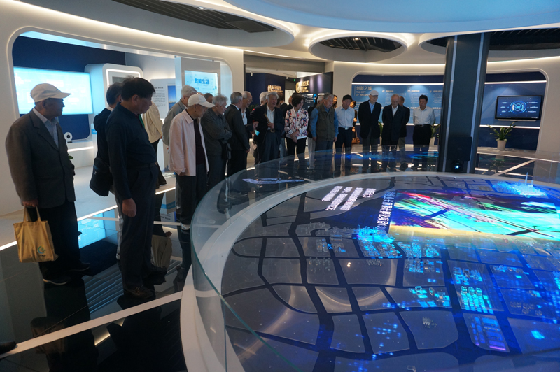 苏州工业园区展示中心展示了园区历年来的发展成果、总体规划、重点片区规划等内容,从交通、住宅、工商业等专项规划角度对苏州工业园区规划进行纵向贯穿演绎。在这里老领导们通过声、光、电的完美结合感受到了高科技的魅力,有的还兴致勃勃地体验了一些科技项目,更加直观地感受到园区建设的步伐和节奏,了解到园区发展的未来方向。